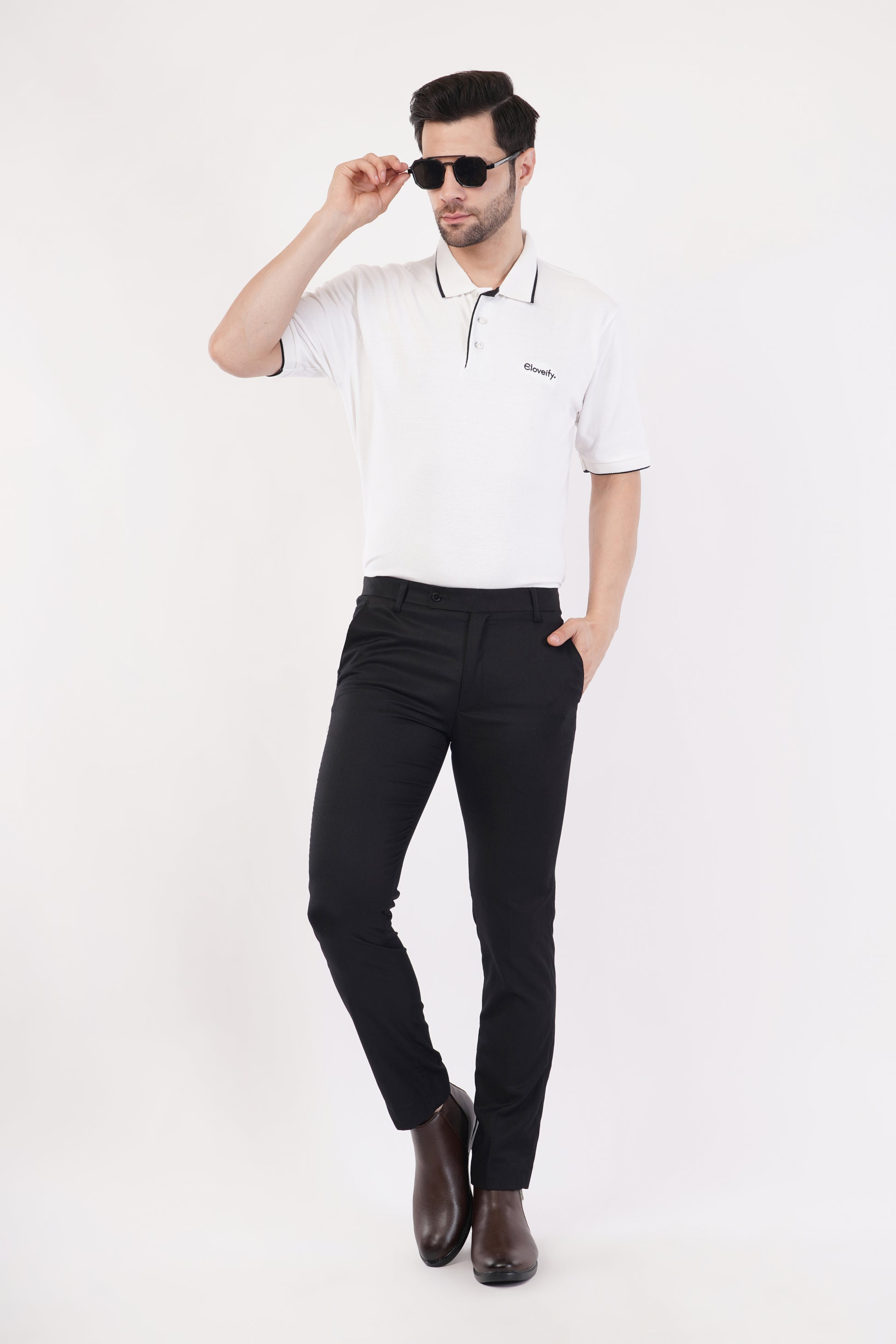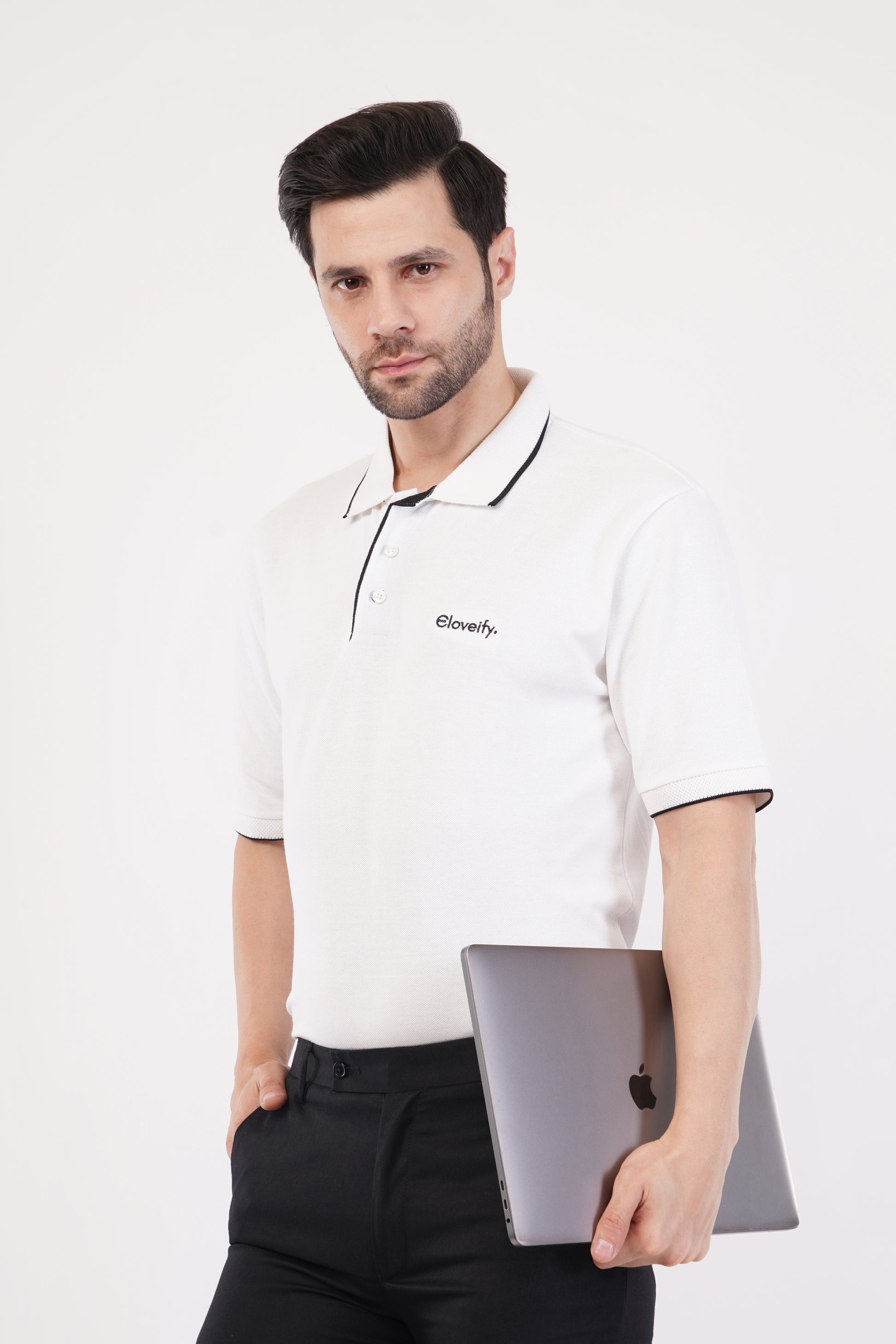 THE JACQUARD COLLAR AND SLEEVE CUFFS FEATURE STYLIST TIPPING DETAILS, ADDING A CLASSIC TOUCH TO THE DESIGN. THIS POLO T-SHIRT IS VERSATILE ENOUGH FOR BOTH CASUAL AND SEMI-FORMAL SETTINGS, BLENDING TIMELESS STYLE WITH MODERN ECO-FRIENDLY CHARMS.