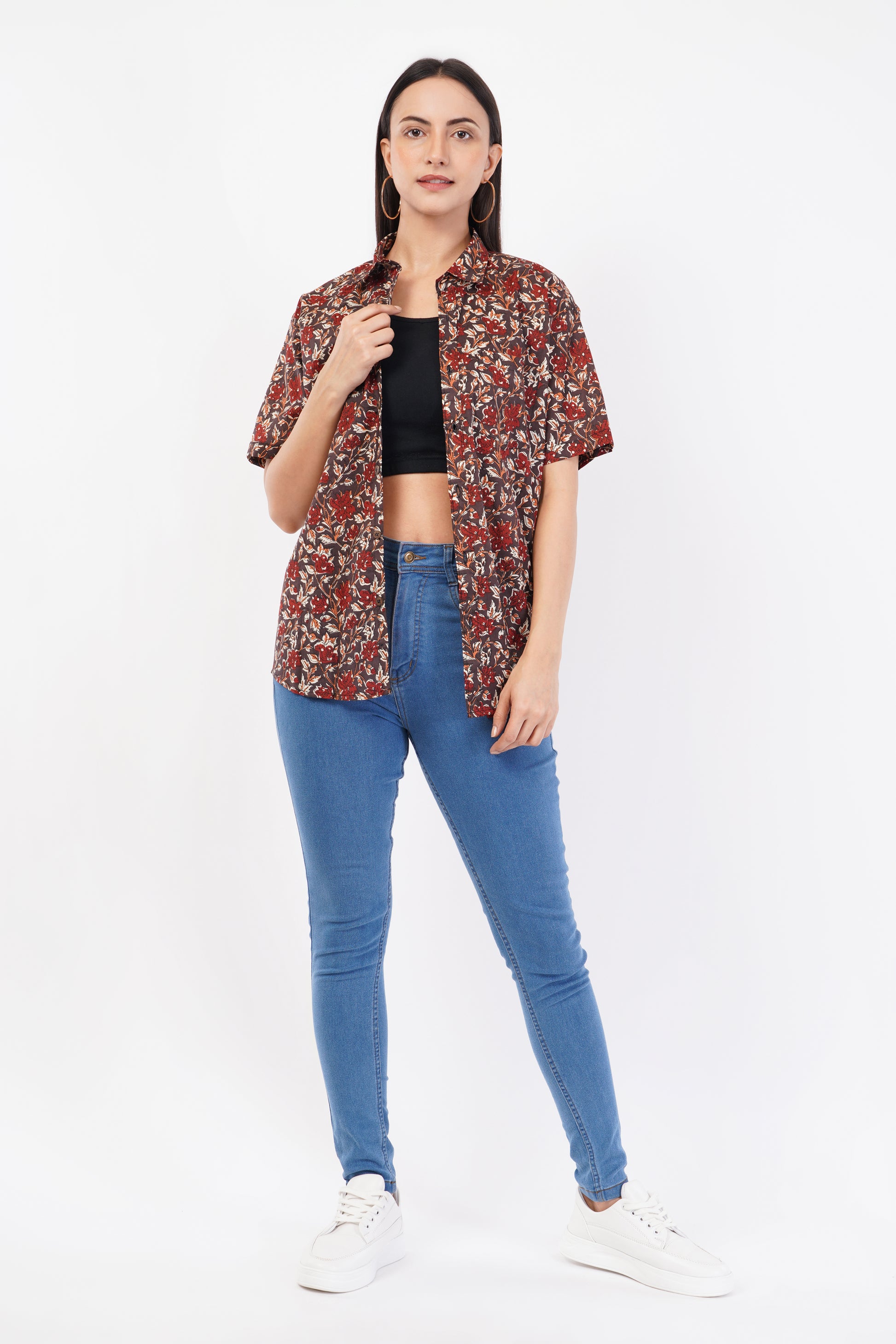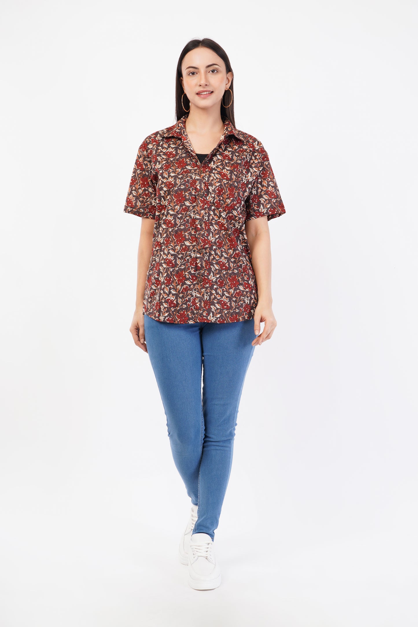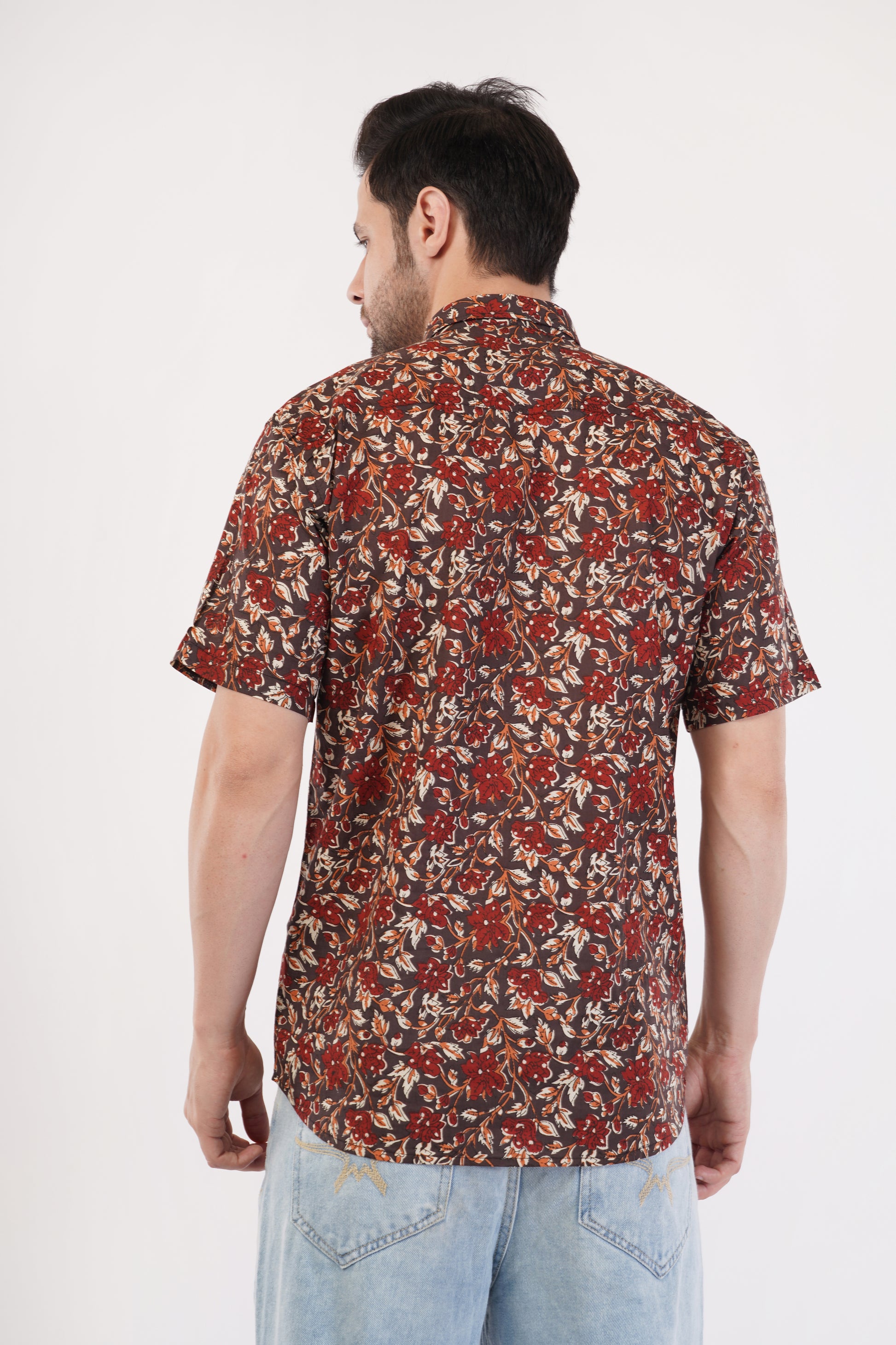 DISCOVER THE ESSENCE OF TRADITION AND STYLE WITH CLOVEIFY'S SANGANERI SHIRTS, METICULOUSLY HANDCRAFTED BY SKILLED ARTISANS FROM JAIPUR, RAJASTHAN. THIS 100% PURE COTTON BROWN SANGANERI SHIRT WITH SMALL RED FLORAL PATTERN IS MADE FROM LIGHTWEIGHT 140 GSM COTTON, THESE SHIRTS FEATURE INTRICATE HAND-BLOCK PRINTS THAT CELEBRATE THE RICH HERITAGE OF SANGANERI CRAFTSMANSHIP.