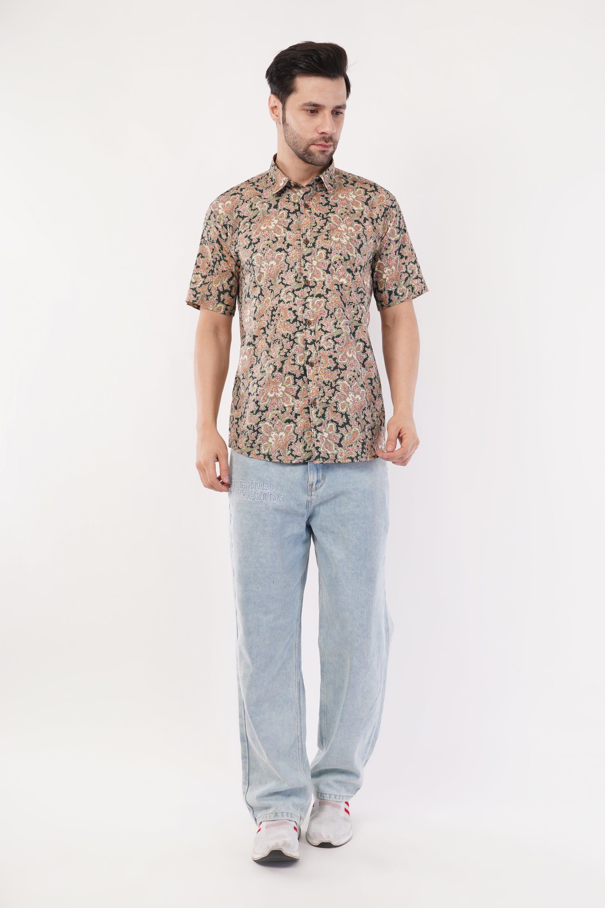 DISCOVER THE ESSENCE OF TRADITION AND STYLE WITH CLOVEIFY'S SANGANERI SHIRTS, METICULOUSLY HANDCRAFTED BY SKILLED ARTISANS FROM JAIPUR, RAJASTHAN. THIS 100% PURE COTTON DARK GREEN SANGANERI SHIRT WITH SMALL FLORAL PATTERN IS MADE FROM LIGHTWEIGHT 140 GSM COTTON, THESE SHIRTS FEATURE INTRICATE HAND-BLOCK PRINTS THAT CELEBRATE THE RICH HERITAGE OF SANGANERI CRAFTSMANSHIP.