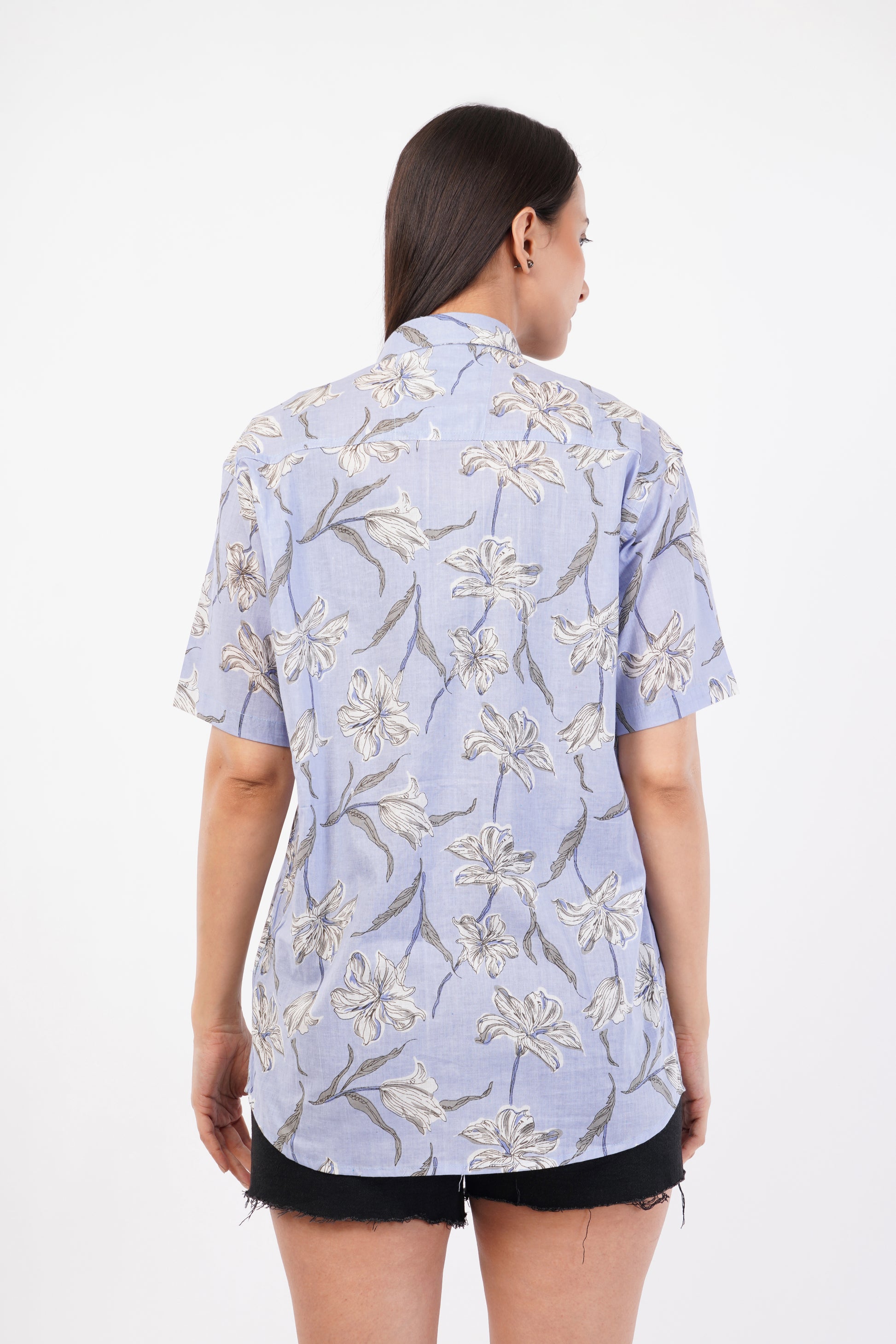 Unisex Lavender Big Floral Pattern Sanganeri Shirt