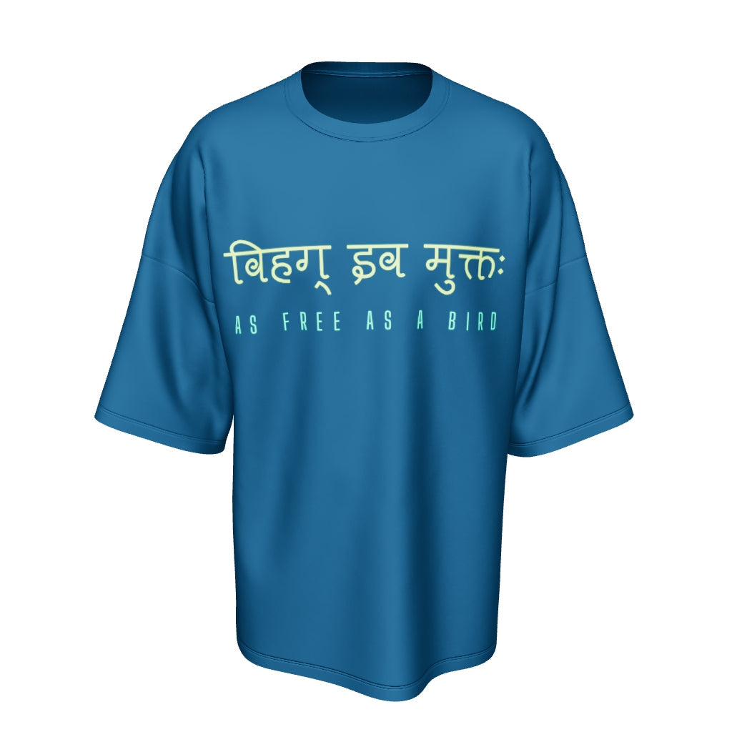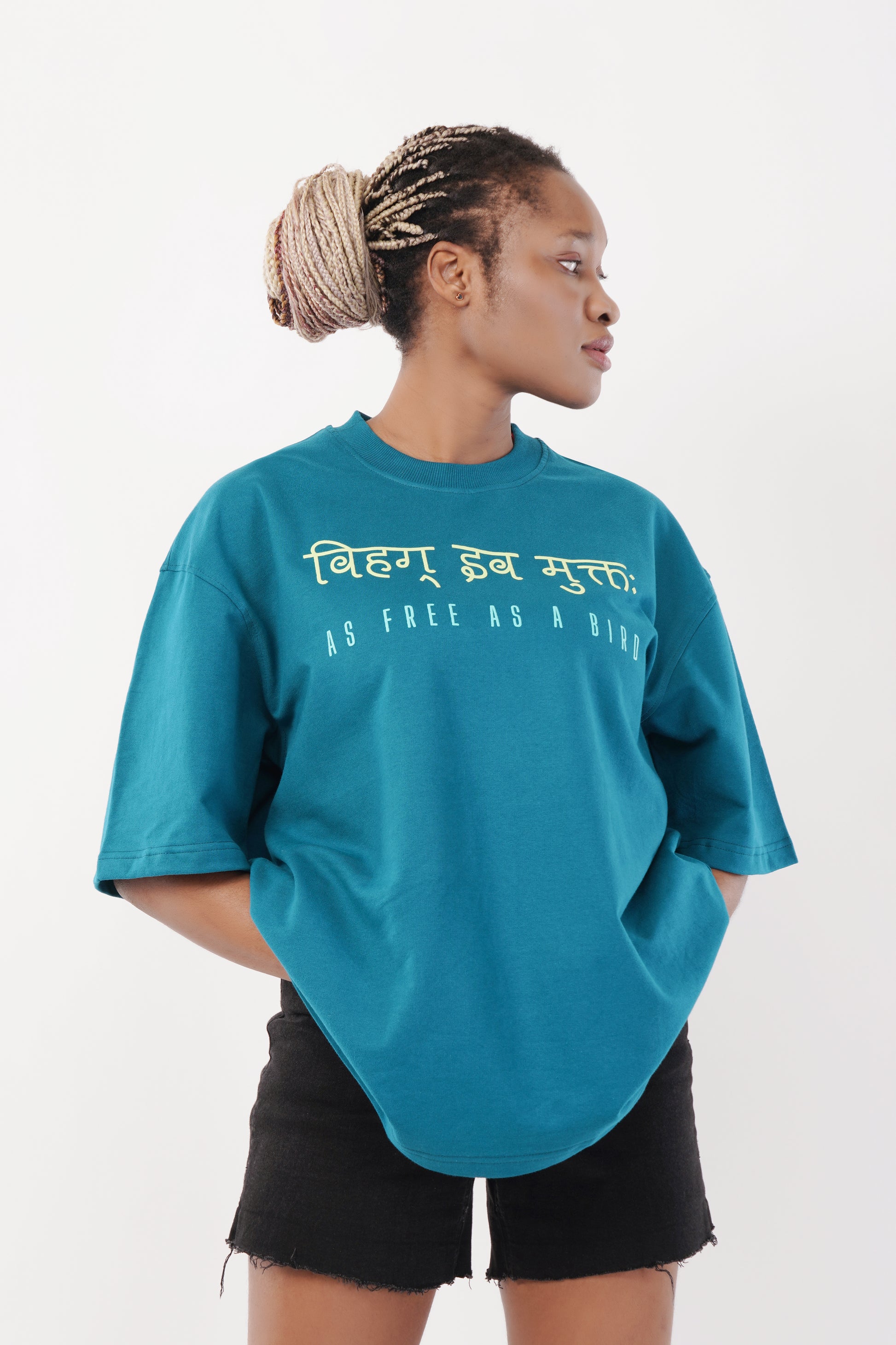 Unisex Full Puff Print "As Free As A Bird" Dark Teal Oversized T-Shirt