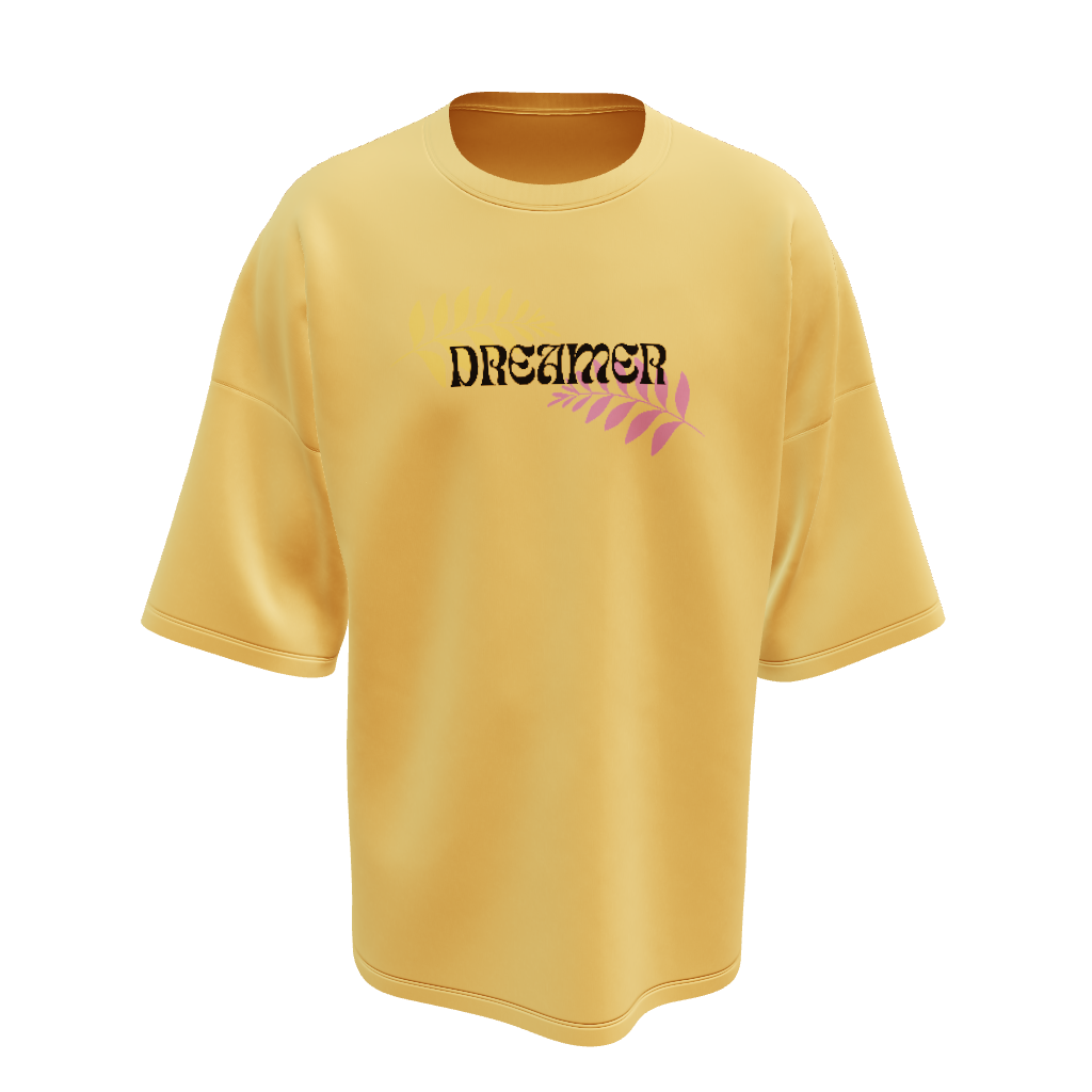 Unisex Puff Print "Dreamer" Beige Oversized T-Shirt