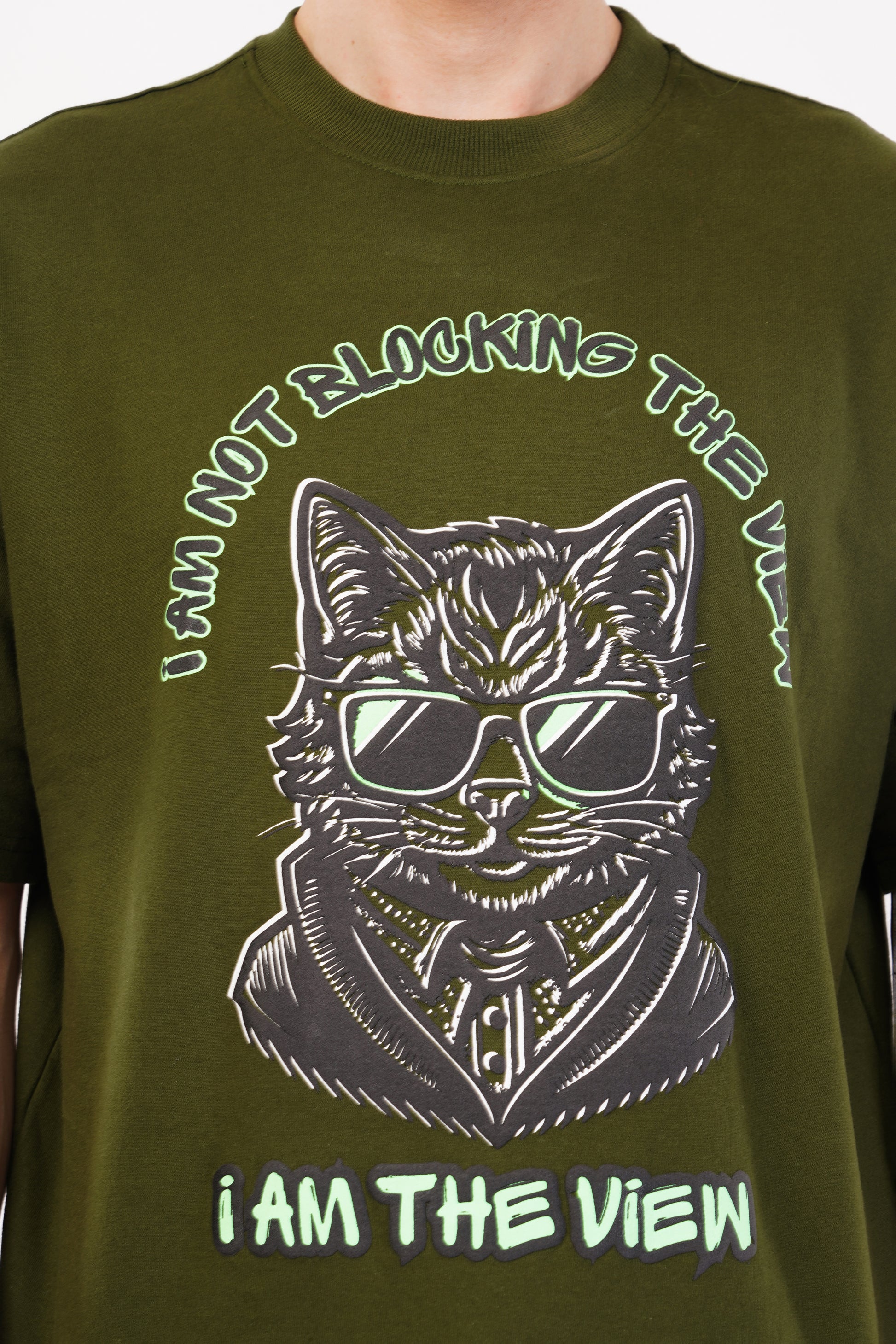 THIS OLIVE GREEN T-SHIRT IS PERFECT FOR A BOLD AND STATEMENT LOOK. IF YOU'RE ONE OF THE BOLD TYPES, THEN THIS CAT DESIGN IS AN ABSOLUTE MATCH FOR YOU. IT IS A PERFECT PIECE TO MAKE YOU STAND OUT OF THE CROWD BECAUSE THIS T-SHIRT WILL HELP YOU IN BECOMING THE REAL VIEW.